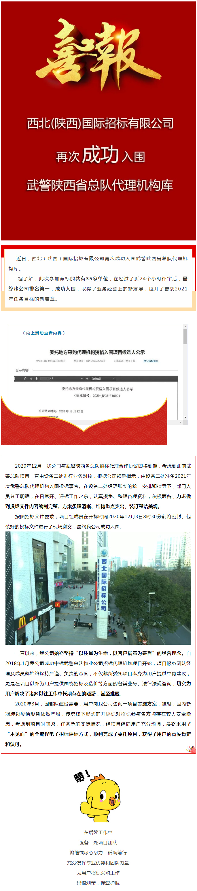 喜報(bào)!我公司再次成功入圍武警陜西省總隊(duì)代理機(jī)構(gòu)庫(kù)