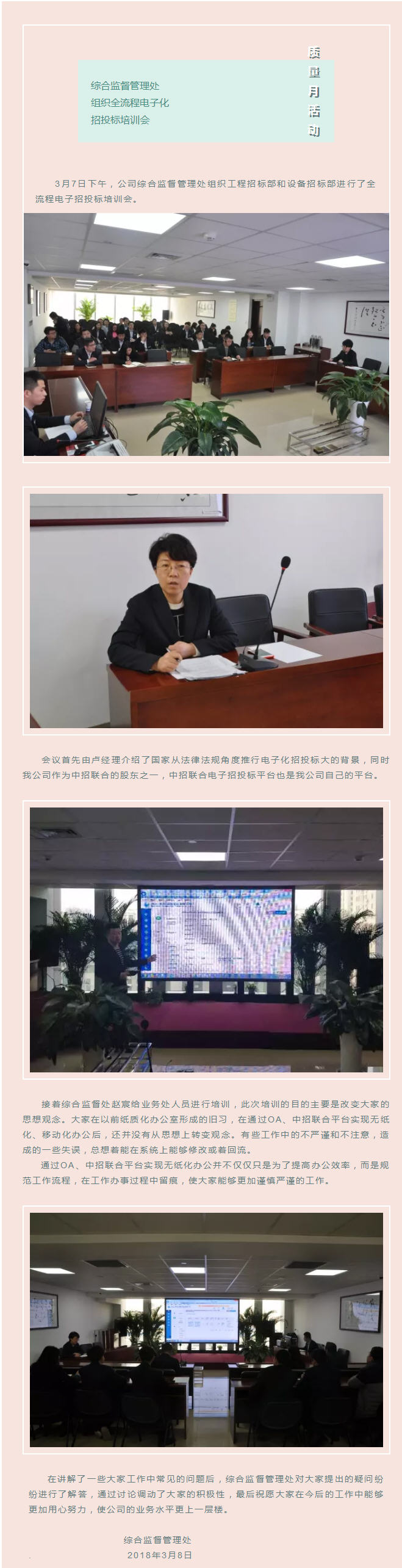 質(zhì)量月活動-綜合監(jiān)督管理處組織全流程電子話招投標(biāo)培訓(xùn)會