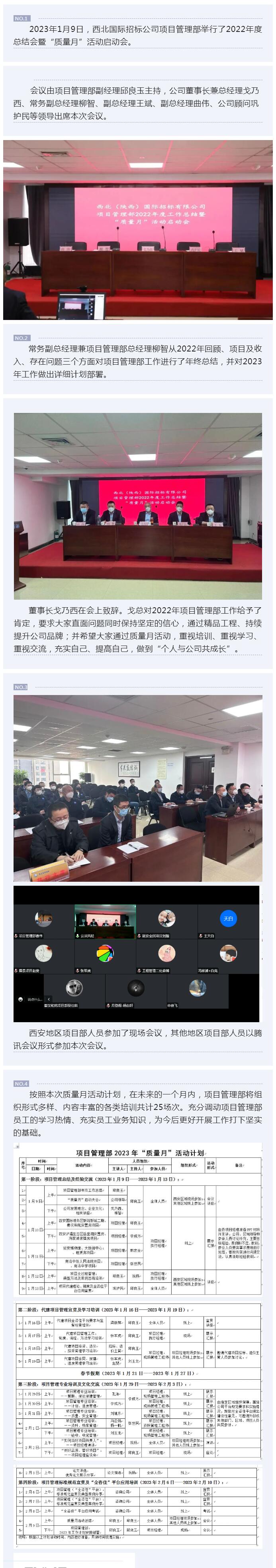 西北國際招標公司項目管理部舉行2022年度總結會暨“質量月”活動啟動會