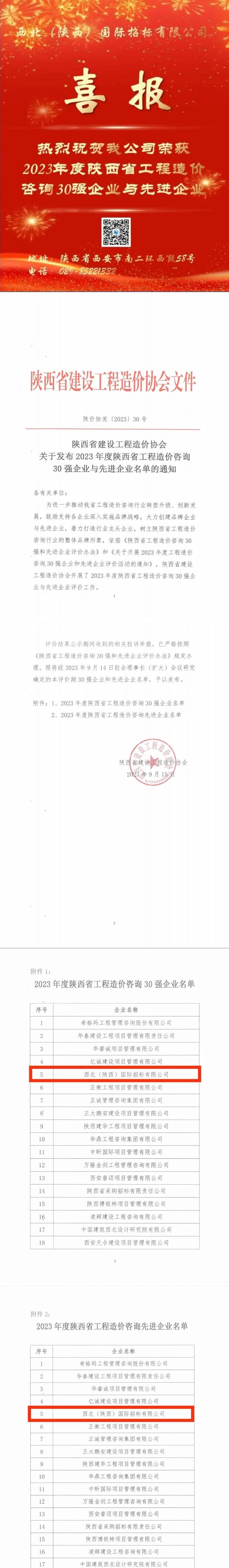 熱烈祝賀我公司榮獲2023年度陜西省工程造價(jià)咨詢30強(qiáng)企業(yè)與先進(jìn)企業(yè)
