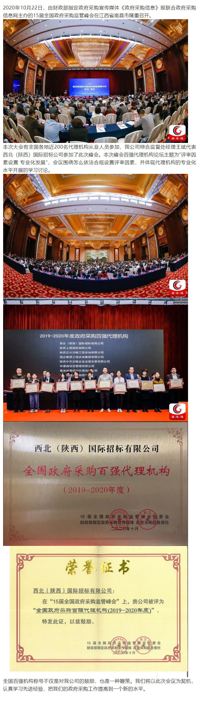 熱烈祝賀西北(陜西)國(guó)際招標(biāo)有限公司再次榮獲“全國(guó)政府采購(gòu)百?gòu)?qiáng)代理機(jī)構(gòu)”稱號(hào)