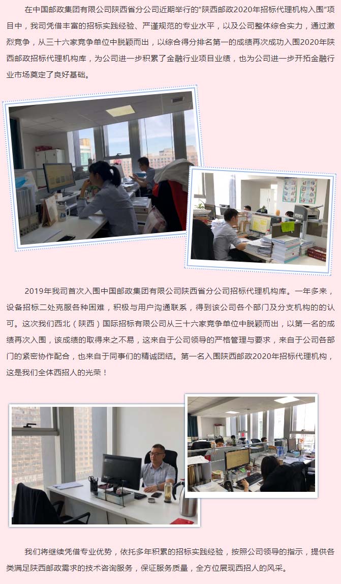 我司再次成功入圍陜西郵政2020年招標(biāo)代理機(jī)構(gòu)