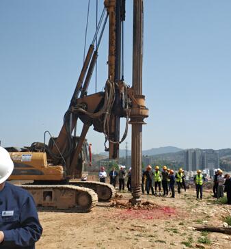 4、4月18日,組織施工單位、監(jiān)理單位、建設(shè)單位、設(shè)計(jì)單位、勘察單位進(jìn)行場地第一根長螺旋鉆孔灌注樁和旋挖鉆孔灌注樁試樁的施工。