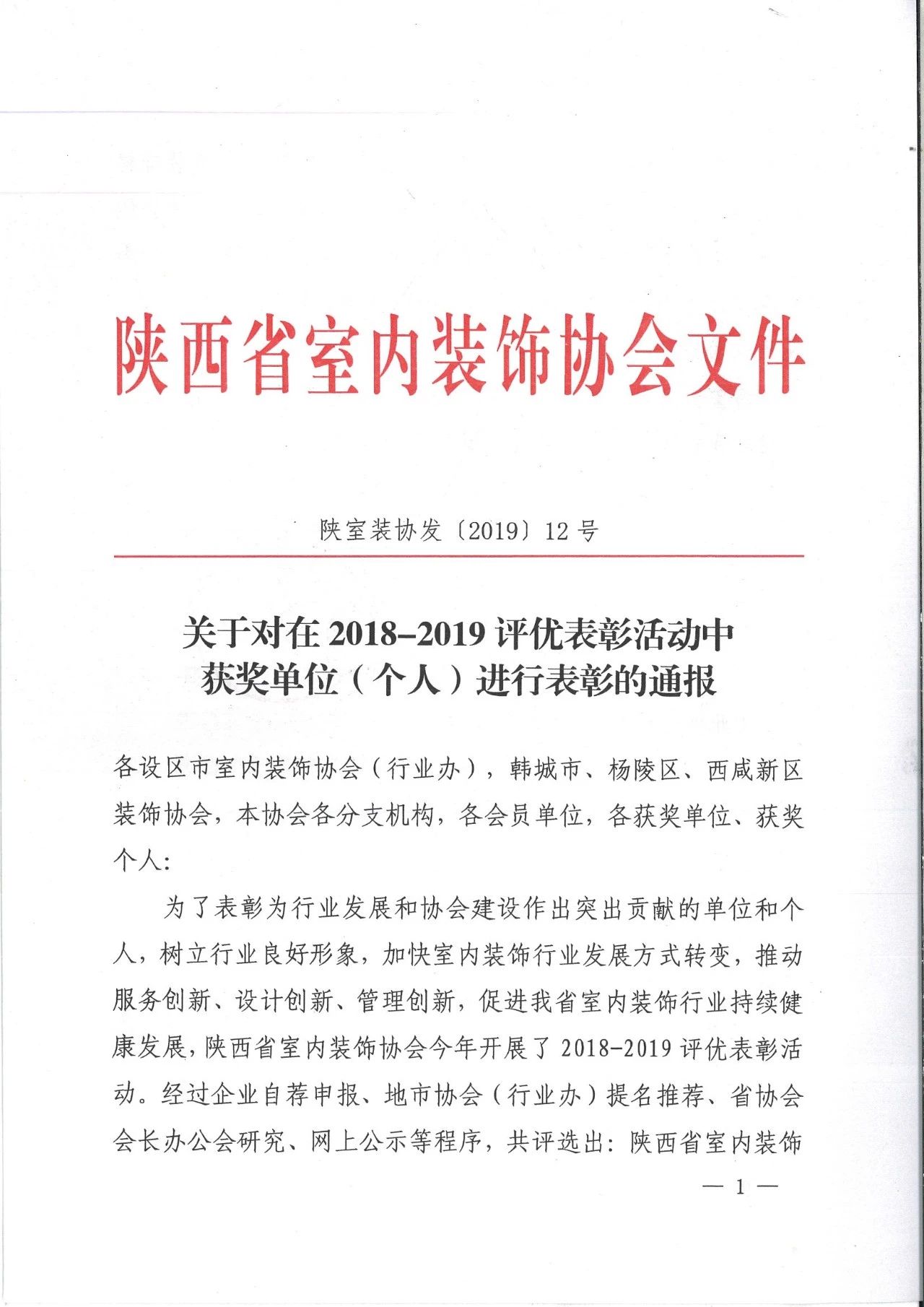 2019年12月26日,“陜西省室內(nèi)裝飾協(xié)會六屆三次理事會暨2018-2019行業(yè)表彰大會”在古都西安召開,我公司被陜西省室內(nèi)裝飾協(xié)會評為2018-2019陜西省室內(nèi)裝飾行業(yè)“優(yōu)秀招標代理機構”