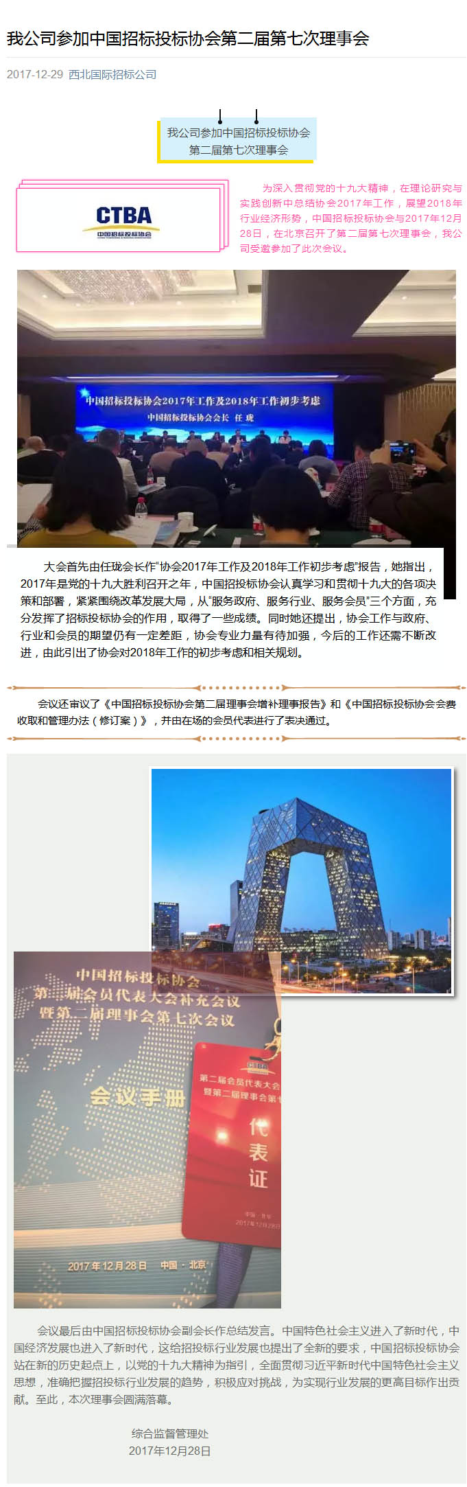 我公司參加中國招標投標協(xié)會第二屆第七次理事會