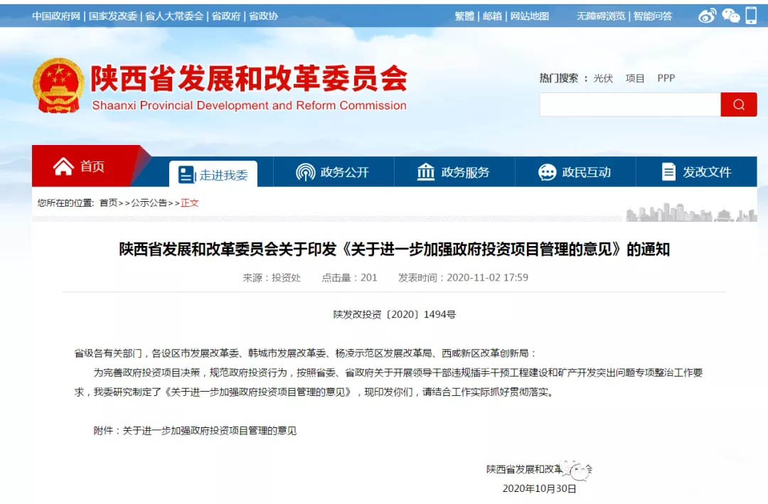 陜西省發(fā)展和改革委員會(huì)印發(fā)《關(guān)于進(jìn)一步加強(qiáng)政府投資項(xiàng)目管理的意見》通知