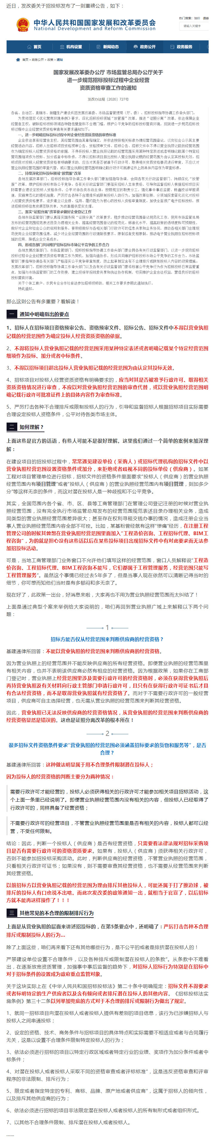 發(fā)改委發(fā)布關(guān)于進(jìn)一步規(guī)范招標(biāo)投標(biāo)過程中企業(yè)經(jīng)營(yíng)資質(zhì)資格審查工作的通知
